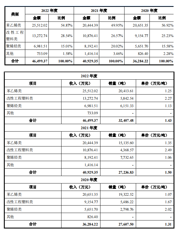 公司主要從事苯乙烯類、改性工程塑料類、聚烯烴類和其他類等改性塑料的研發(fā)、生產(chǎn)、銷(xiāo)售,應(yīng)用于家用電器、消費(fèi)電子、汽車(chē)零部件等領(lǐng)域。