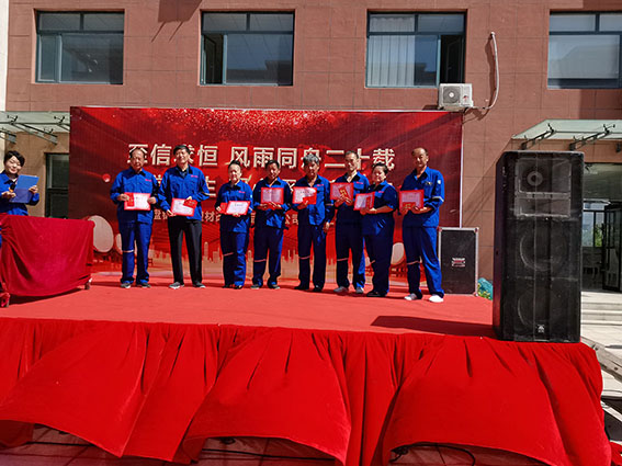公司總經理、工會主席為慶典致辭,慶典上員工們表演了精彩節(jié)目《感恩的心》等,為了感恩回報服務企業(yè)多年的老員工,公司還為每位服務十年以上的老員工頒發(fā)了《服務企業(yè)優(yōu)秀員工》證書和獎金,還為每位員工頒發(fā)了精美的紀念品。