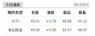 2015年9月2日國際原油價(jià)格表