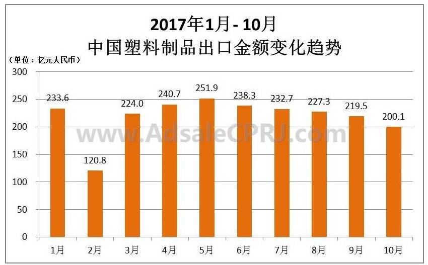 10月進(jìn)口初級(jí)形狀的塑料251.7億元,同比增長(zhǎng)18.6%