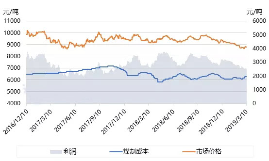 由上圖可見(jiàn),進(jìn)入2019年,煤制聚乙烯的生產(chǎn)利潤(rùn)逐漸減少。而增值稅的降低,對(duì)西北生產(chǎn)企業(yè)來(lái)說(shuō),意味著運(yùn)輸成本或有所降低,如當(dāng)前運(yùn)送到山東地區(qū)銷售大約需要300元/噸的運(yùn)輸成本,降稅后或?qū)p少3元/噸,這就進(jìn)一步增加了煤化工生產(chǎn)企業(yè)的利潤(rùn)空間。
